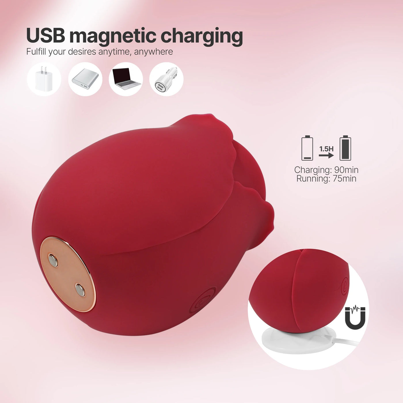 * Rose toys provide 120 minutes of play time after 1.5 hours of full charge. Washable, waterproof, lady's rose toy. Made of high quality silica gel. The sucking rose vibration absorber, suitable for women's private taste nipple suction cup mouth licking G spot clitoris